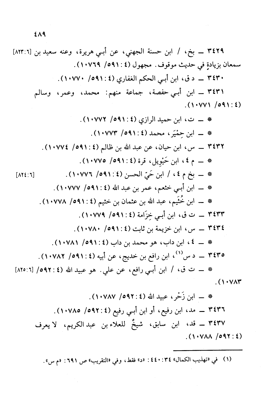3431 - ابن أبي حفصة , جماعة منهم: محمد , وعمر , وسالم (4: 591/ 10771).