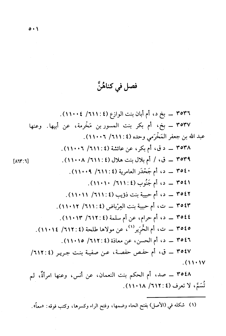 3542 - (د) أم حبيبة بنت ذؤيب (4: 611/ 11011).