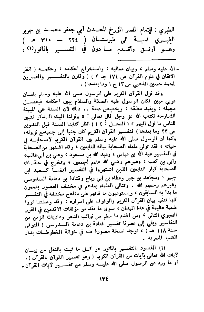 1 المقصود بالتفسير المأثور هو كل ما ثبت بالنقل من بيان لآيات الله تعالى بآيات من القرآن الكريم "وهو تفسير القرآن بالقرآن". أو ما ورد عن الرسول صلى الله عليه وسلم من تفسير لآيات القرآن =