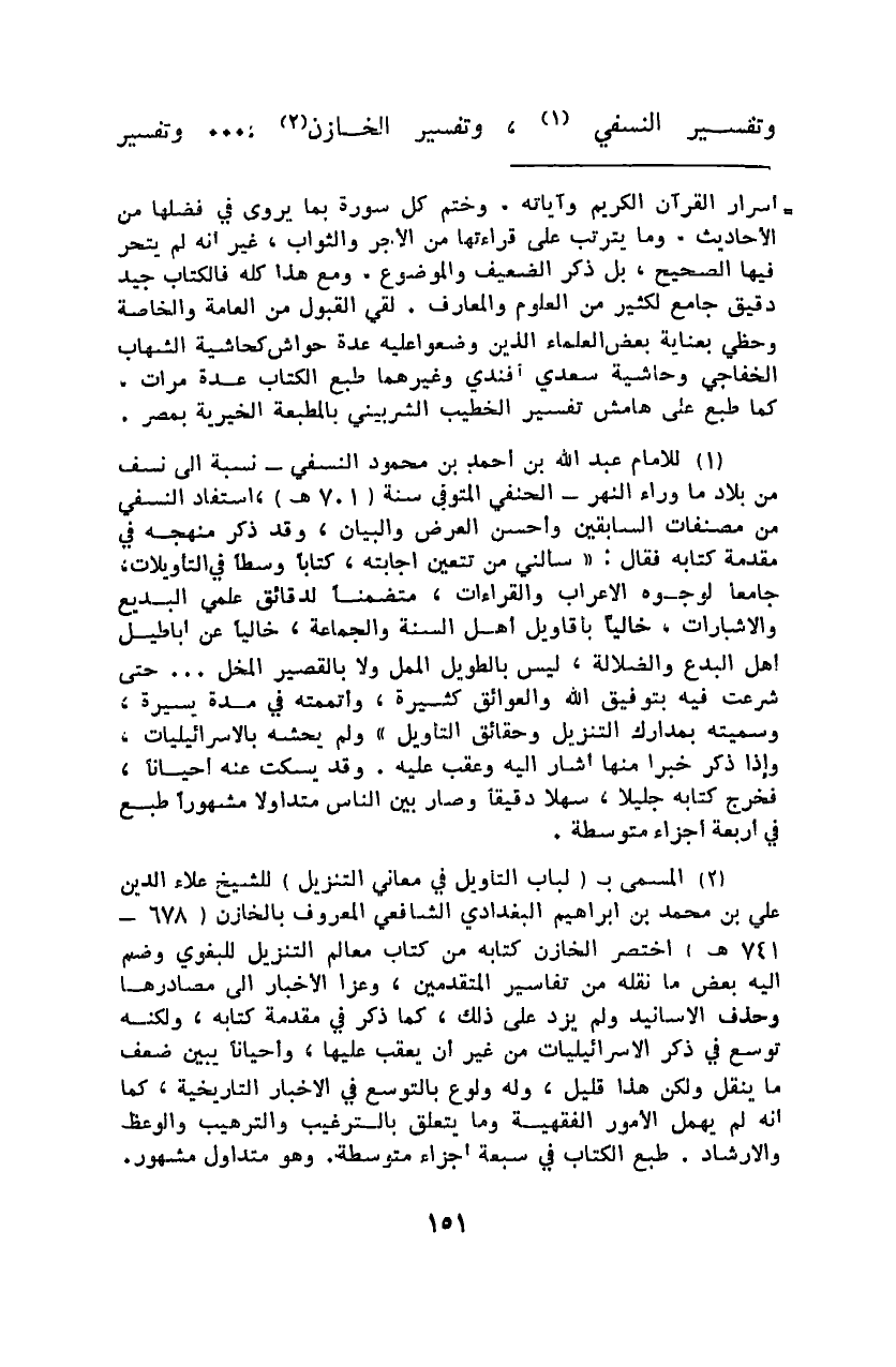 وتفسير النسفي1، وتفسير الخازن2 ... وتفسير