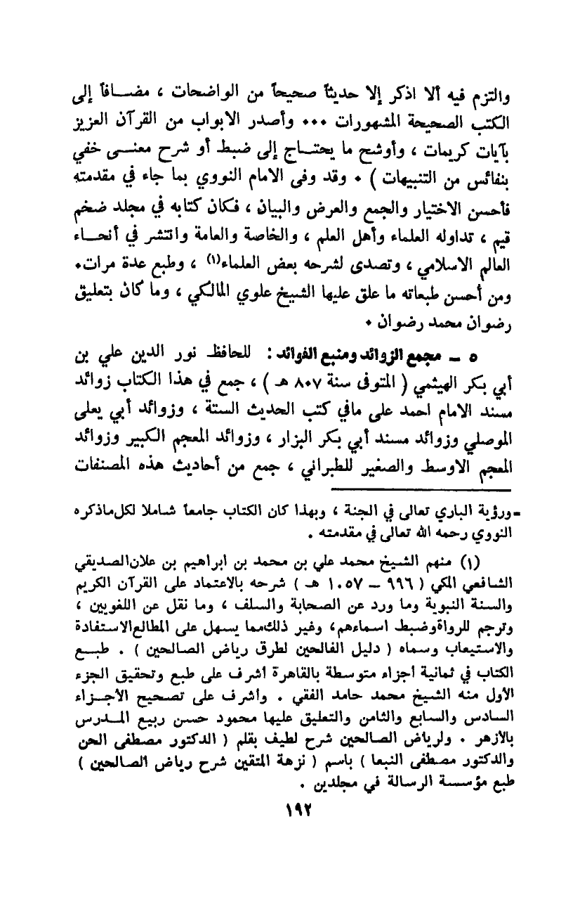 وألتزم فيه ألا أذكر إلا حديثا صحيحًا من الواضحات، مضافًا إلى الكتب الصحيحة المشهورات. وأصدر الأبواب من القرآن العزيز بآيات كريمات، وأوشح ما يحتاج إلى ضبط أو شرح معنى خفي بنفائس من التنبيهات". وقد وفى الإمام النووي بما جاء في مقدمته؛ فأحسن الاختيار والجمع والعرض والبيان؛ فكان كتابه في مجلد ضخم قيم، تداوله العلماء وأهل العلم، والخاصة والعامة وانتشر في أنحاء العالم الإسلامي، وتصدى لشرحه بعض العلماء1، وطبع عدة مرات. ومن أحسن طبعاته ما علق عليها الشيخ علوي المالكي، وما كان بتعليق رضوان محمد رضوان.