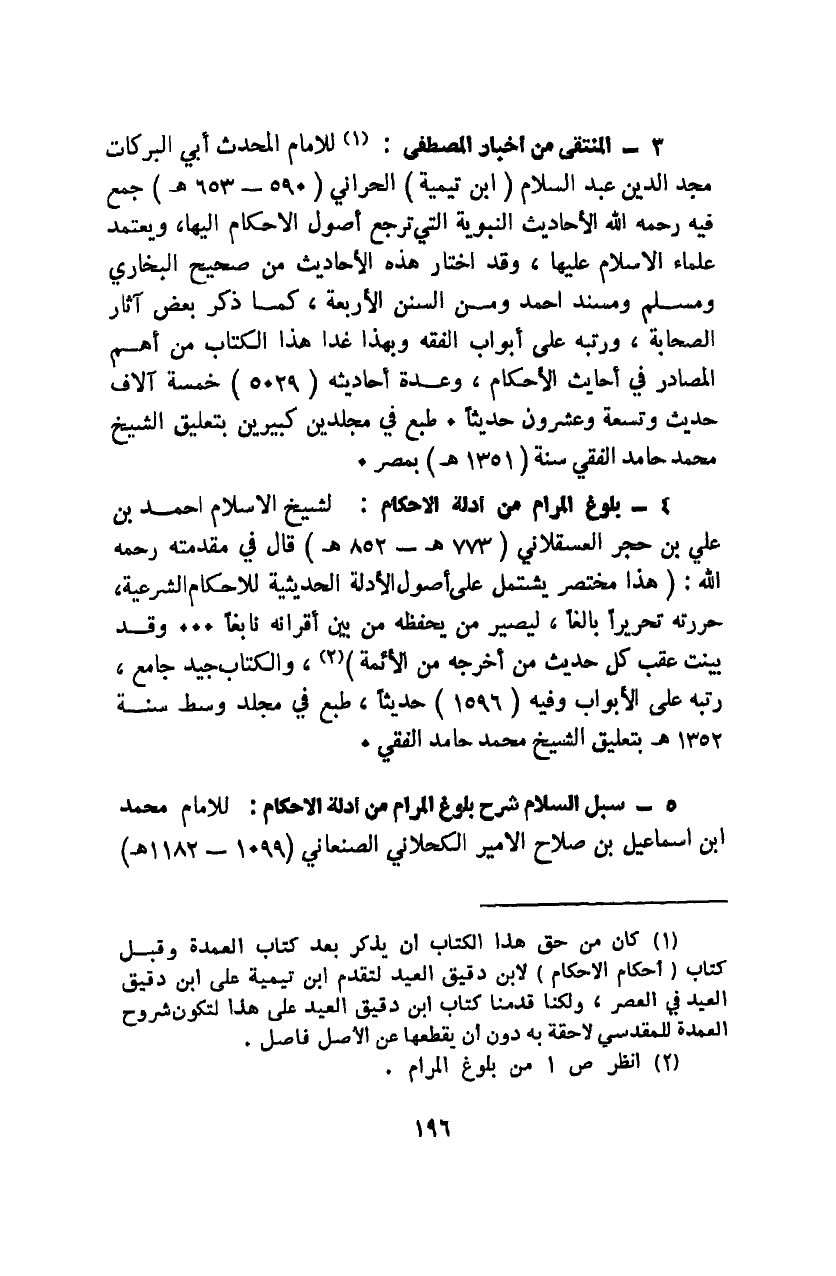 1 كان من حق هذا الكتاب أن يذكر بعد كتاب العمدة وقبل كتاب إحكام الأحكام لابن دقيق العيد لتقدم ابن تيمية على ابن دقيق العيد في العصر؛ ولكنا قدمنا كتاب ابن دقيق العيد على هذا لتكون شروح العمدة للمقدسي لاحقة به دون أن يقطعها عن الأصل فاصل.