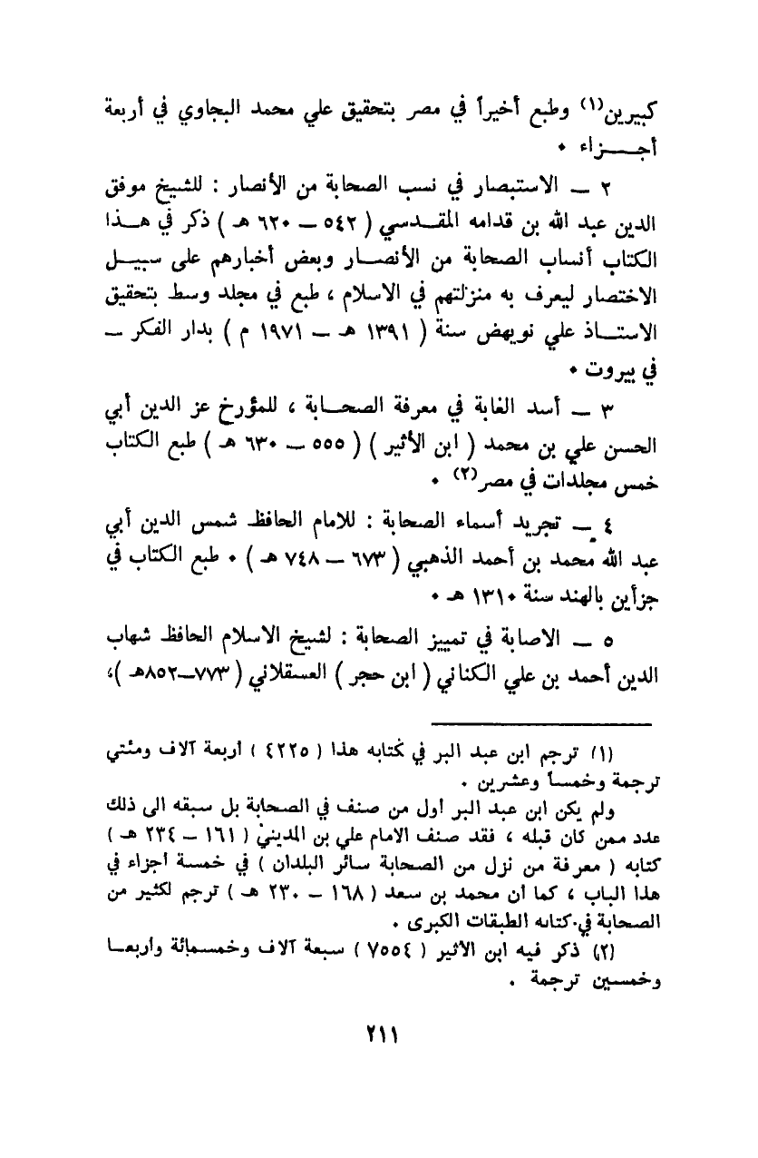 3- أسد الغابة في معرفة الصحابة: للمؤرخ عز الدين أبي الحسن علي بن محمد "ابن الأثير" "555 - 630هـ" طبع الكتاب خمس مجلدات في مصر2.