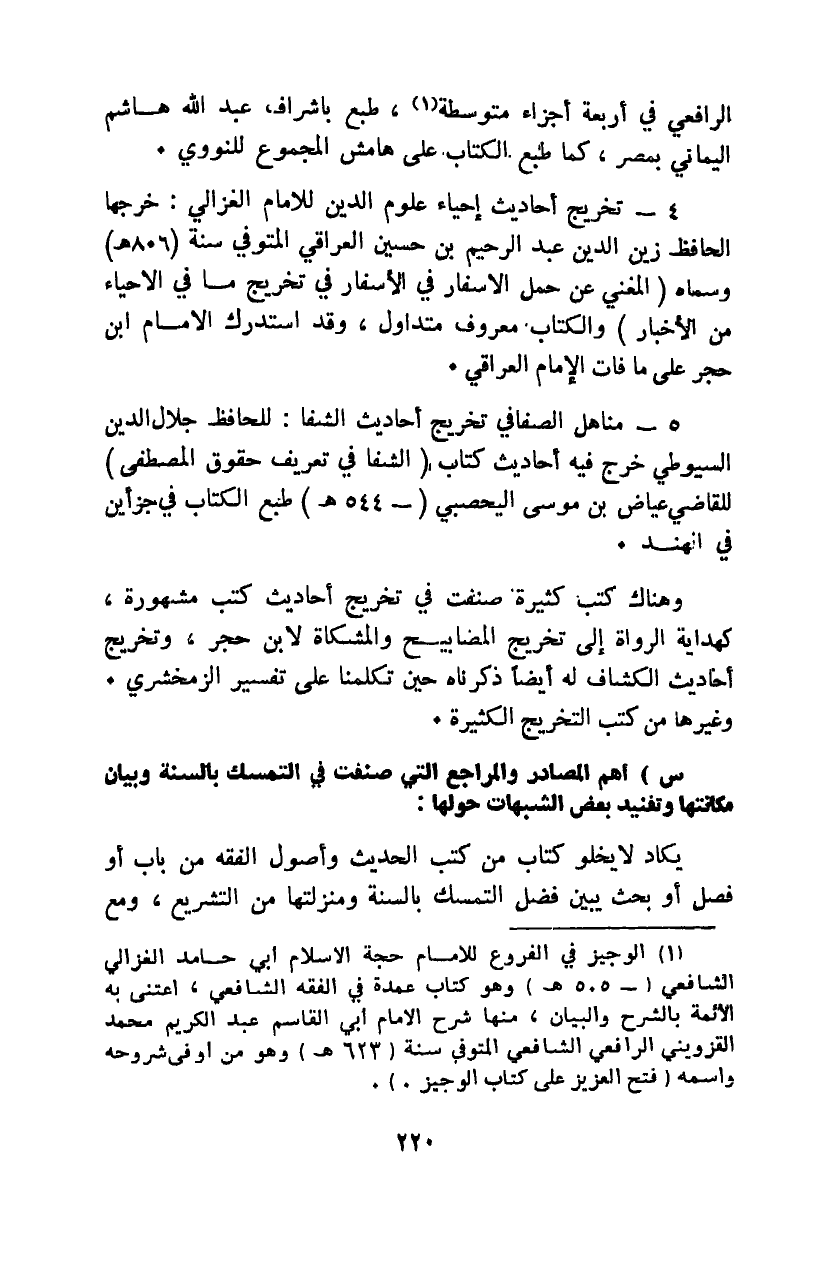 1 الوجيز في الفروع للإمام حجة الإسلام أبي حامد الغزالي الشافعي "505هـ" وهو كتاب عمدة في الفقه الشافعي، اعتنى به الأئمة بالشرح والبيان، منها شرح الإمام أبي القاسم عبد الكريم محمد القزويني الرافعي الشافعي المتوفى سنة "623هـ" وهو من أوفى شروحه واسمه "فتح العزيز على كتاب الوجيز".