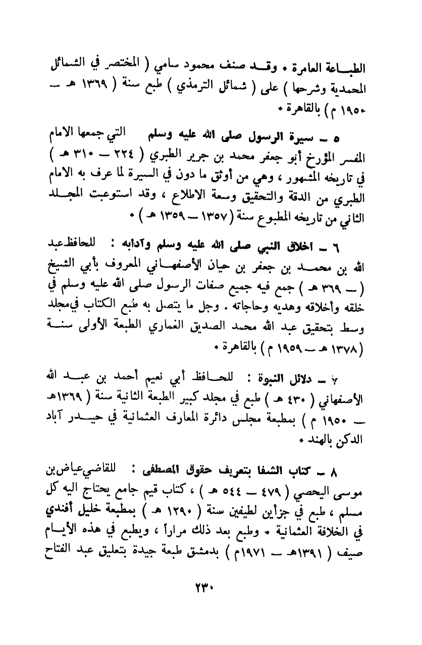 للقاضي عياض بن موسى اليحصي "479 - 544هـ"، كتاب قيم جامع يحتاج إليه كل مسلم، طبع في جزأين لطيفين سنة "1290هـ" بمطبعة خليل أفندي في الخلافة العثمانية. وطبع بعد ذلك مرارا، ويطبع في هذه الأيام صيف "1391هـ - 1971م" بدمشق طبعة جيدة بتعليق عبد الفتاح