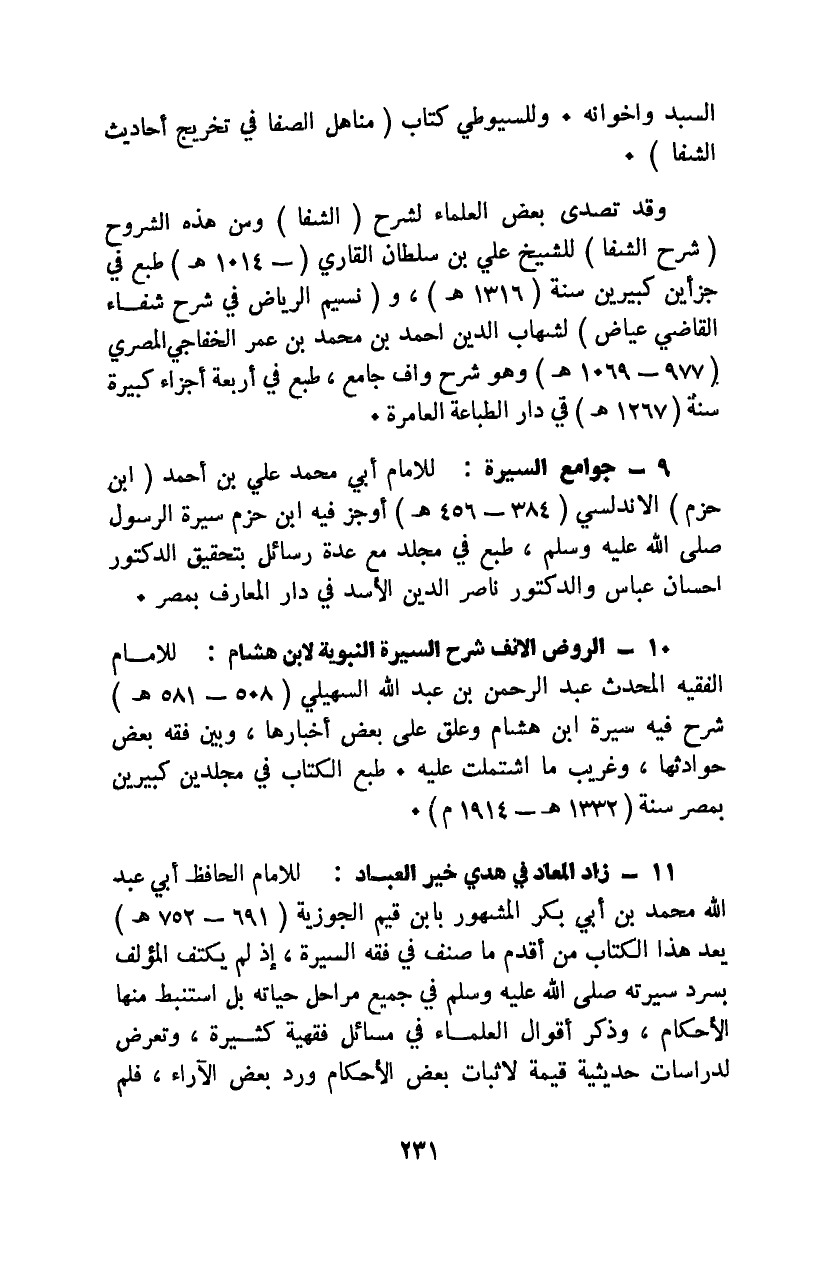 السيد وإخوانه. وللسيوطي كتاب "مناهل الصفا في تخريج أحاديث الشفا".