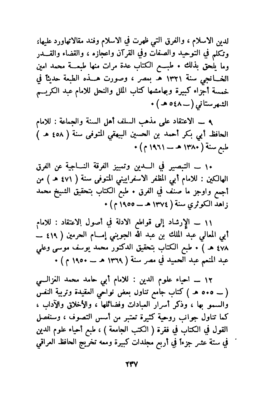 للإمام أبي المعالي عبد الملك بن عبد الله الجويني إمام الحرمين "419 - 478هـ". طبع الكتاب بتحقيق الدكتور محمد يوسف موسى وعلي عبد المنعم عبد الحميد في مصر سنة "1369هـ - 1950م".