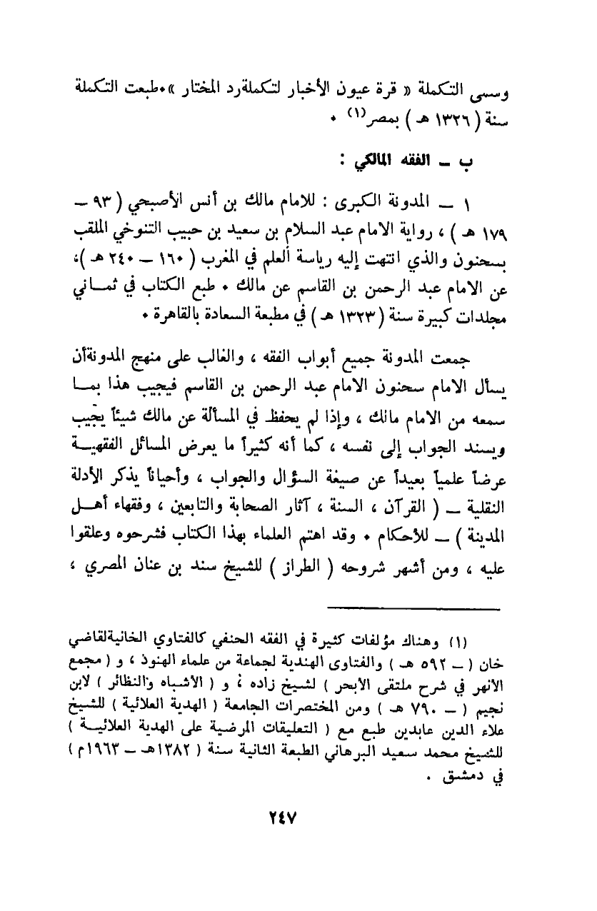 1 وهناك مؤلفات كثيرة في الفقه الحنفي كالفتاوى الخانية لقاضي خان "592هـ" والفتاوى الهندية لجماعة من علماء الهنود، و"مجمع الأنهر في شرح ملتقى الأبحر" لشيخ زاده، و"الأشباه والنظائر" لابن نجيم "790هـ" ومن المختصرات الجامعة "الهدية العلائية" للشيخ علاء الدين عابدين طبع مع "التعليقات المرضية على الهدية العلائية" للشيخ محمد سعيد البرهاني الطبعة الثانية سنة "1382هـ - 1963م" في دمشق.