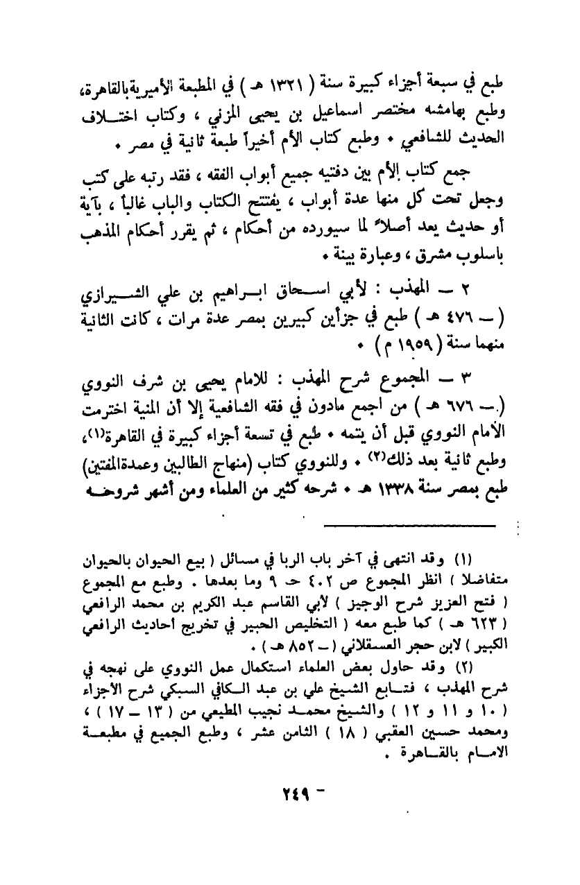 1 وقد انتهى في آخر باب الربا في مسائل بيع الحيوان بالحيوان متفاضلًا انظر المجموع ص402 ج9 وما بعدها. وطبع مع المجموع "فتح العزيز شرح الوجيز" لأبي القاسم عبد الكريم بن محمد الرافعي "623هـ" كما طبع معه "التخليص الحبير في تخريج أحاديث الرافعي الكبير" لابن حجر العسقلاني "852هـ".