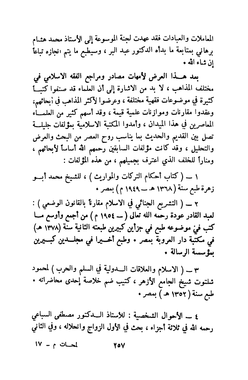 1- "كتاب أحكام التركات والمواريث"، للشيخ محمد أبو زهرة طبع سنة "1368هـ -1949م" بمصر.