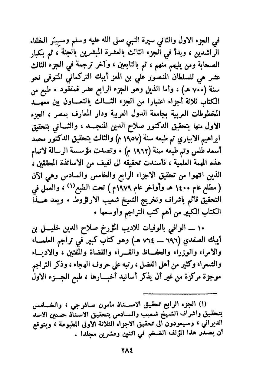 للأديب المؤرخ صلاح الدين خليل بن أيبك الصفدي "696 - 764هـ" وهو كتاب كبير في تراجم العلماء والأمراء والوزراء والحفاظ والقراء والقضاة والمفتين، والأدباء والشعراء وكثير من أهل الفضل، رتبه على حروف الهجاء، وذكر التراجم موجزة مركزة من غير أن يذكر أسانيد أخبارها، طبع الجزء الأول