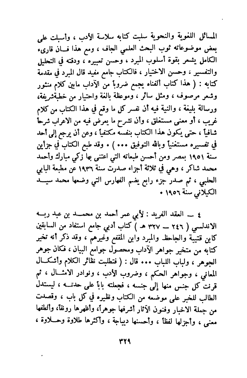 لأبي عمر أحمد بن محمد بن عبد ربه الأندلسي "246 - 327هـ" كتاب أدبي جامع استفاد من السابقين كابن قتيبة والجاحظ والمبرد وابن المقفع وغيرهم، وقد ذكر أنه تخير كتابه من متخير جواهر الآداب ومحصول جوامع البيان؛ فكان جوهر الجوهر، ولباب اللباب ... قال: "فتطلبت نظائر الكلام وأشكال المعاني، وجواهر الحكم، وضروب الآداب، ونوادر الأمثال، ثم قرنت كل جنس منها إلى جنسه؛ فجعلته بابًا على حدته؛ ليستدل الطالب للخبر على موضعه من الكتاب ونظيره في كل باب، وقصدت من جملة الأخبار وفنون الآثار أشرفها جوهرًا وأظهرها رونقًا، وألطفها معنى، وأجزلها لفظًا، وأحسنها ديباجة، وأكثرها طلاوة وحلاوة،