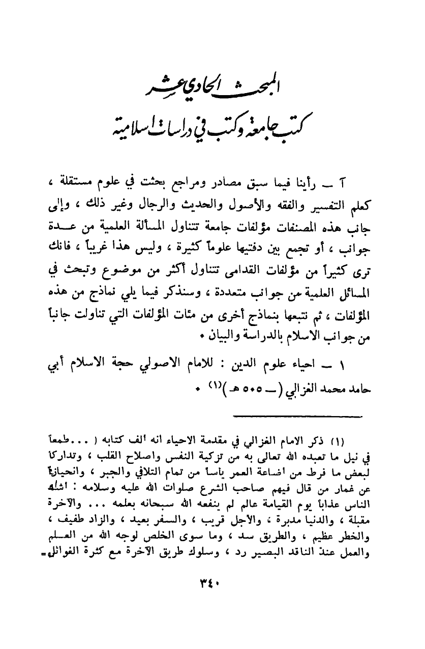 المبحث الحادي عشر: كتب جامعة وكتب في دراسات إسلامية