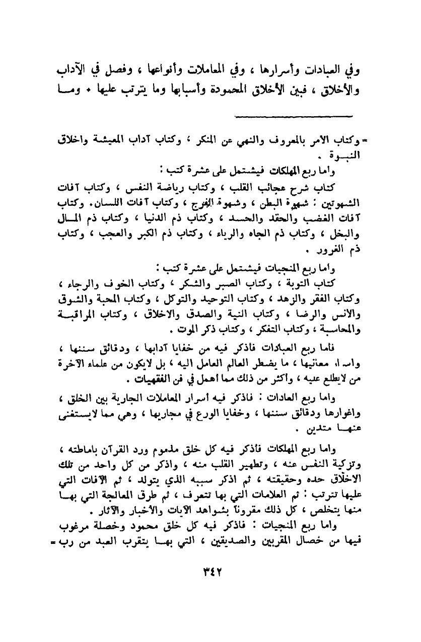 وأما ربع المنجيات فيشتمل على عشرة كتب:
