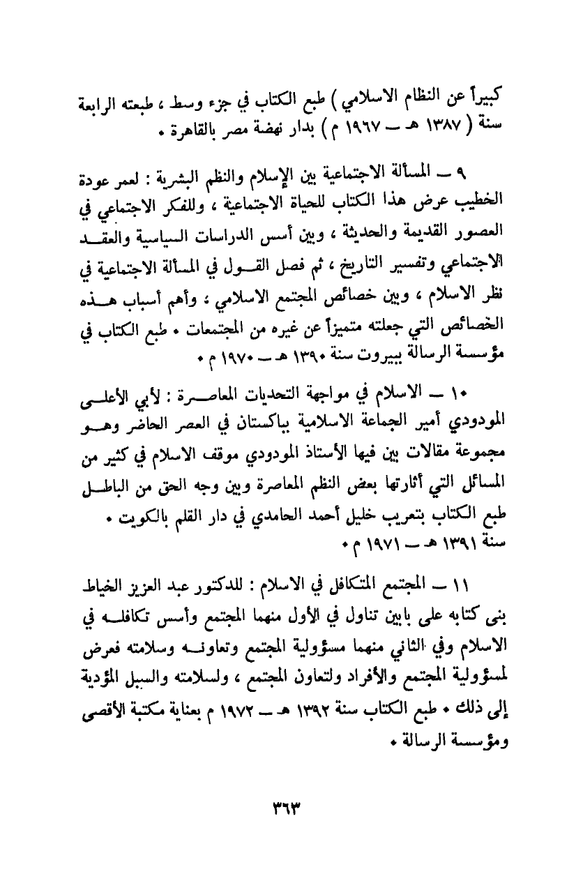 كبيرًا عن النظام الإسلامي" طبع الكتاب في جزء وسط، طبعته الرابعة سنة "1387هـ-1967م" بدار نهضة مصر.