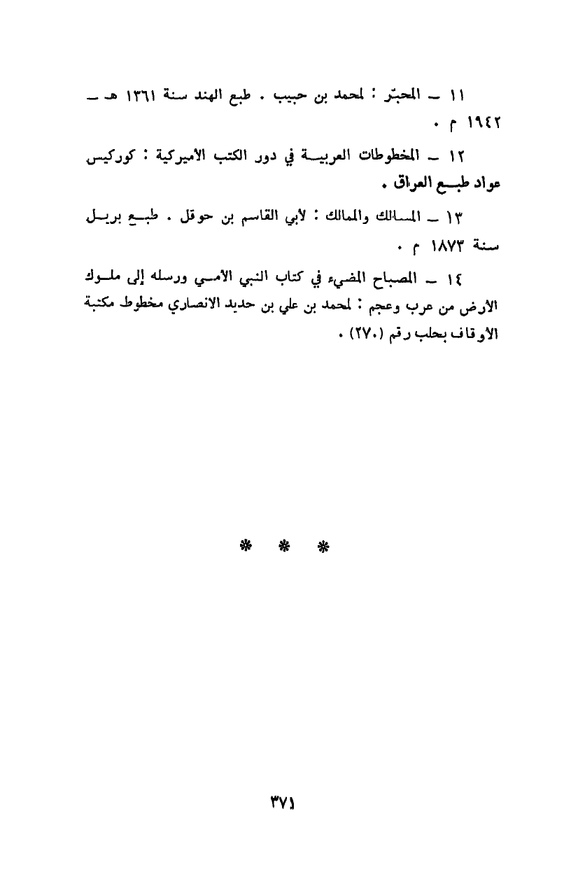 11- المحبّر: لمحمد بن حبيب. طبع الهند سنة 1361هـ - 1942م.