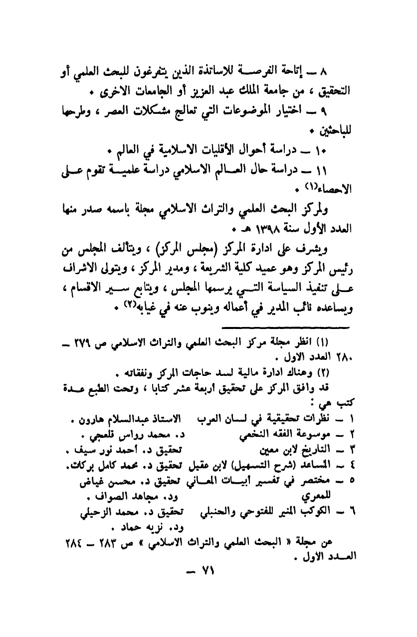 1 انظر مجلة مركز البحث العلمي والتراث الإسلامي ص279 - 280 العدد الأول.