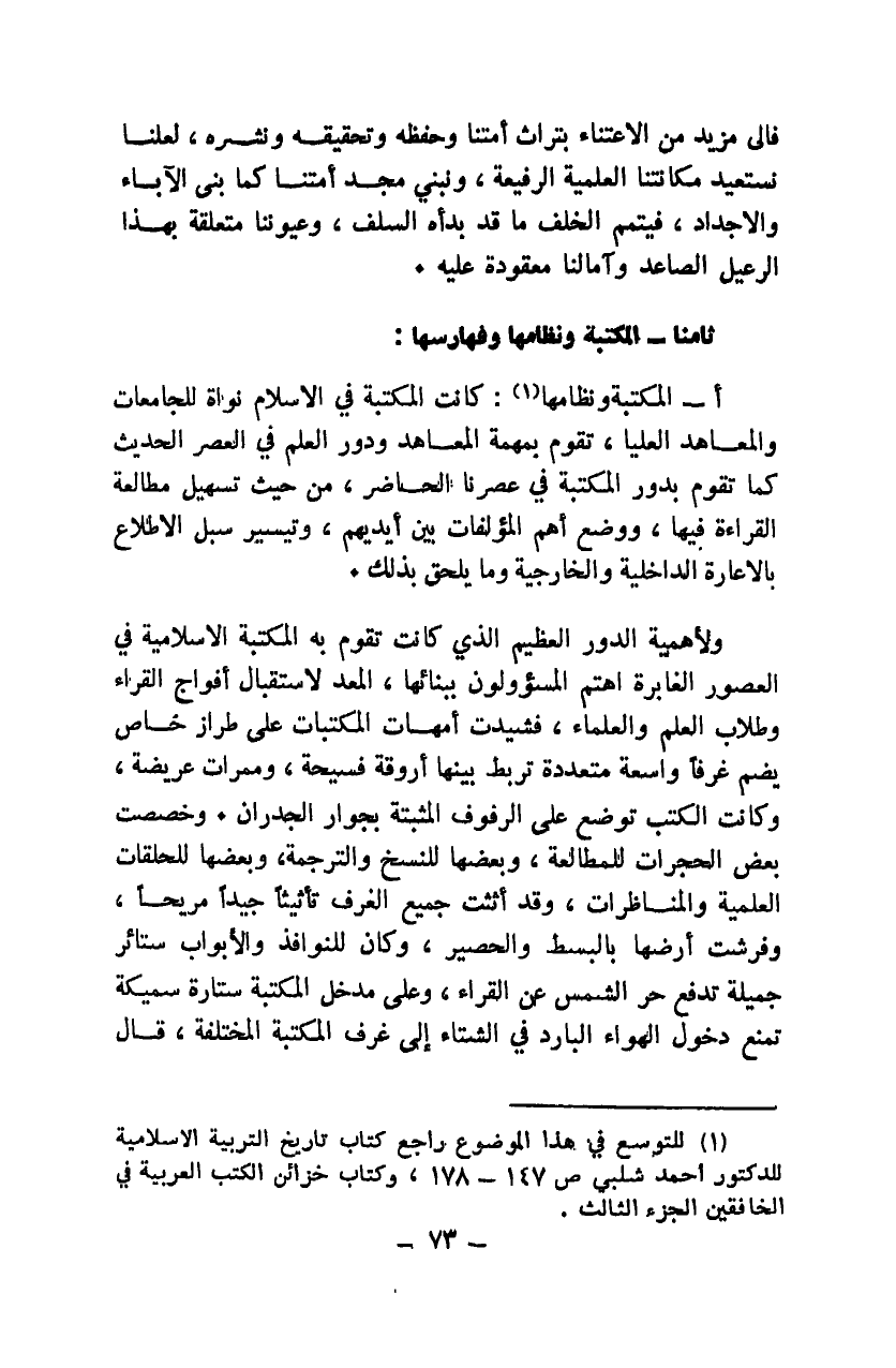 1 للتوسع في هذا الموضوع راجع كتاب تاريخ التربية الإسلامية للدكتور أحمد شلبي ص147-178، وكتاب خزائن الكتب العربية في الخافقين الجزء الثالث.