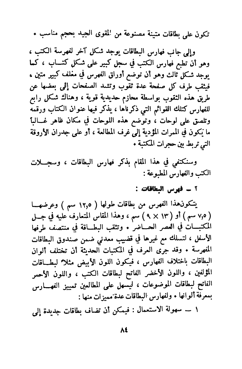 وسنكتفي في هذا المقام بذكر فهارس البطاقات، وسجلات الكتب والفهارس المطبوعة: