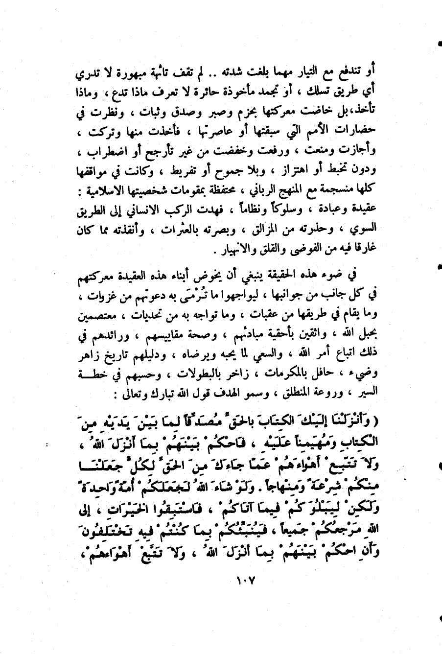 في ضوء هذه الحقيقة ينبغي أن يخوض أبناء هذه العقيدة معركتهم في كل جانب من جوانبها، ليواجهوا ما تُرْمَى به دعوتهم من غزوات، وما يقام في طريقها من عقبات، وما تواجه به من تحديات، معتصمين بجبل الله، واثقين بأحقية مبادئهم، وصحة مقاييسهم، ورائدهم في ذلك اتباع أمر الله، والسعي لما يحبه ويرضاه، ودليلهم تاريخ زاهر وضيء، حافل بالمكرمات، زاخر بالبطولات، وحسبهم في خطة السير، وروعة المنطق، وسمو الهدف قول الله تبارك وتعالى:
