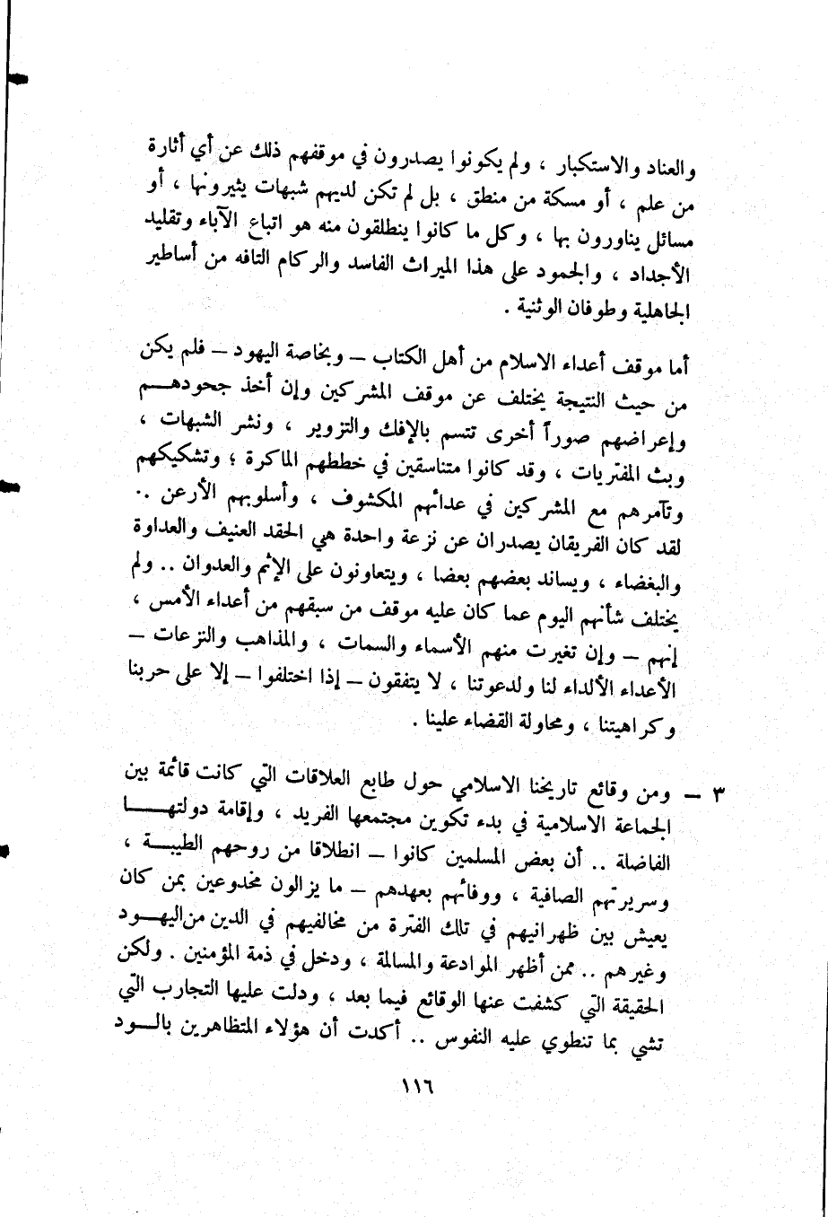 3- ومن وقائع تاريخنا الإسلامي حول طابع العلاقات التي كانت قائمة بين الجماعة الإسلامية في بدء تكوين مجتمعها الفريد، وإقامة دولتها الفاضلة.. أن بعض المسلمين كانوا -انطلاقا من روحهم الطيبة، وسريرتهم الصافية، ووفائهم بعهدهم- ما يزالون مخدوعين بمن كان يعيش بين ظهرانيهم في تلك الفترة من مخالفيهم في الدين من اليهود وغيرهم.. ممن أظهر الموادعة والمسالمة، ودخل في ذمة المؤمنين، ولكن الحقيقة التي كشفت عنها الوقائع فيما بعد، ودلت عليها التجارب التي تشي بما تنطوي عليه النفوس.. أكدت أن هؤلاء المتظاهرين بالود