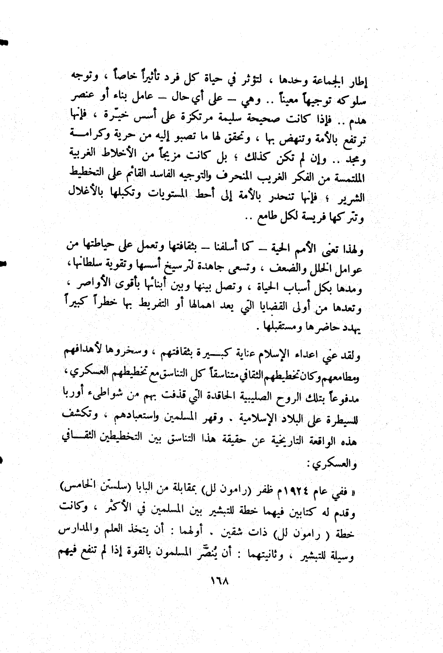 ولقد عني أعداء الإسلام عناية كبيرة بثقافتهم، وسخروها لأهدافهم ومطامعهم وكان تخطيطهم الثقافي متناسقًا كل التناسق مع تخطيطهم العسكري، مدفوعًا بتلك الروح الصليبية الحاقدة التي قذفت بهم من شواطئ أوربا للسيطرة على البلاد الإسلامية، وقهر المسلمين واستعبادهم، وتكشف هذه الواقعة التاريخية عن حقيقة هذا التناسق بين التخطيطين الثقافي والعسكري: