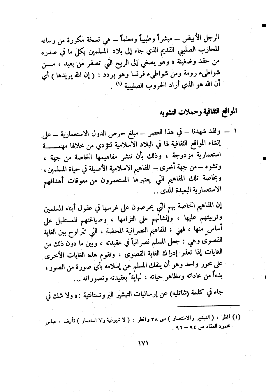 1 انظر: "التبشير والاستعمار" ص38 وانظر: "لا شيوعية ولا استعمار" تأليف: عباس محمود العقاد ص94-96.
