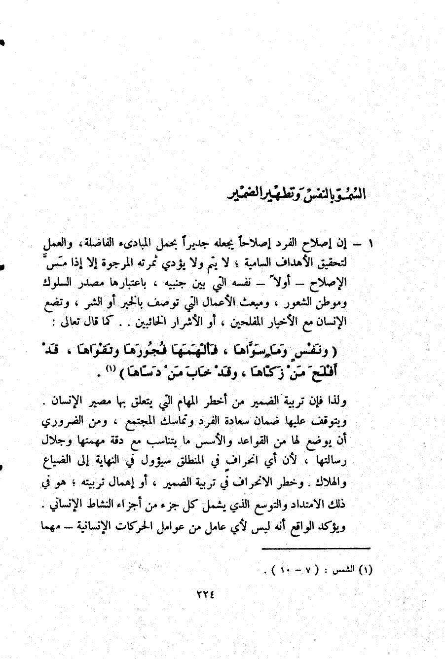 {وَنَفْسٍ وَمَا سَوَّاهَا، فَأَلْهَمَهَا فُجُورَهَا وَتَقْوَاهَا، قَدْ أَفْلَحَ مَنْ زَكَّاهَا، وَقَدْ خَابَ مَنْ دَسَّاهَا} 1.