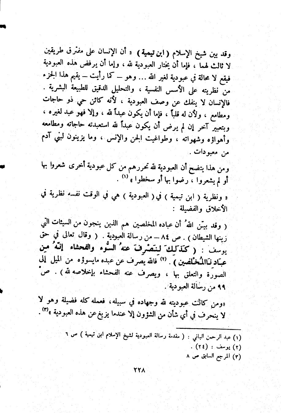 1 عبد الرحمن الباني: "مقدمة رسالة العبودية لشيخ الإسلام ابن تيمية" ص6.