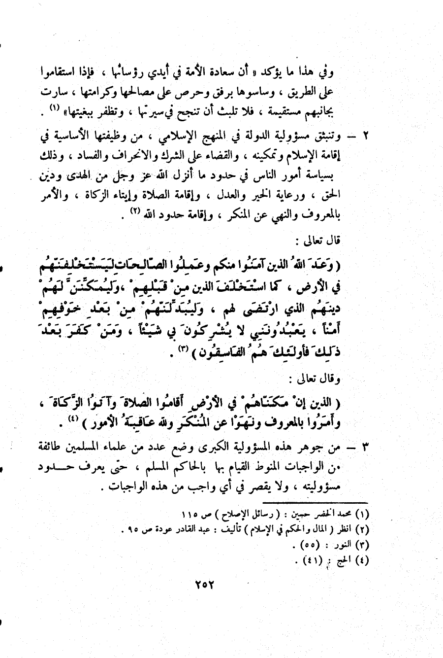 وقال تعالى: {الَّذِينَ إِنْ مَكَّنَّاهُمْ فِي الأَرْضِ أَقَامُوا الصَّلاةَ وَآتَوُا الزَّكَاةَ وَأَمَرُوا بِالْمَعْرُوفِ وَنَهَوْا عَنِ الْمُنْكَرِ وَلِلَّهِ عَاقِبَةُ الأُمُورِ} 4.