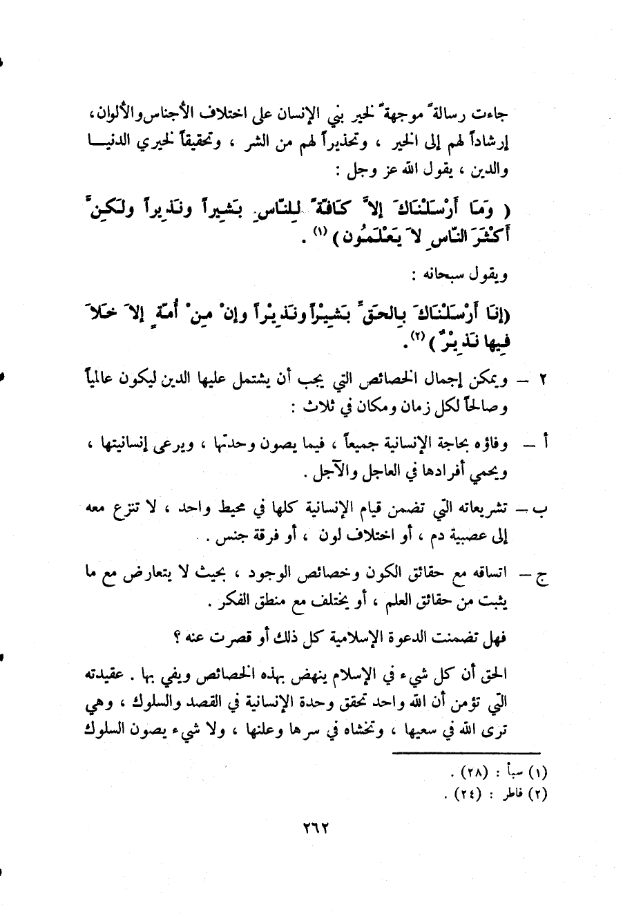 {وَمَا أَرْسَلْنَاكَ إِلاَّ كَافَّةً لِلنَّاسِ بَشِيرًا وَنَذِيرًا وَلَكِنَّ أَكْثَرَ النَّاسِ لا يَعْلَمُونَ} 1.