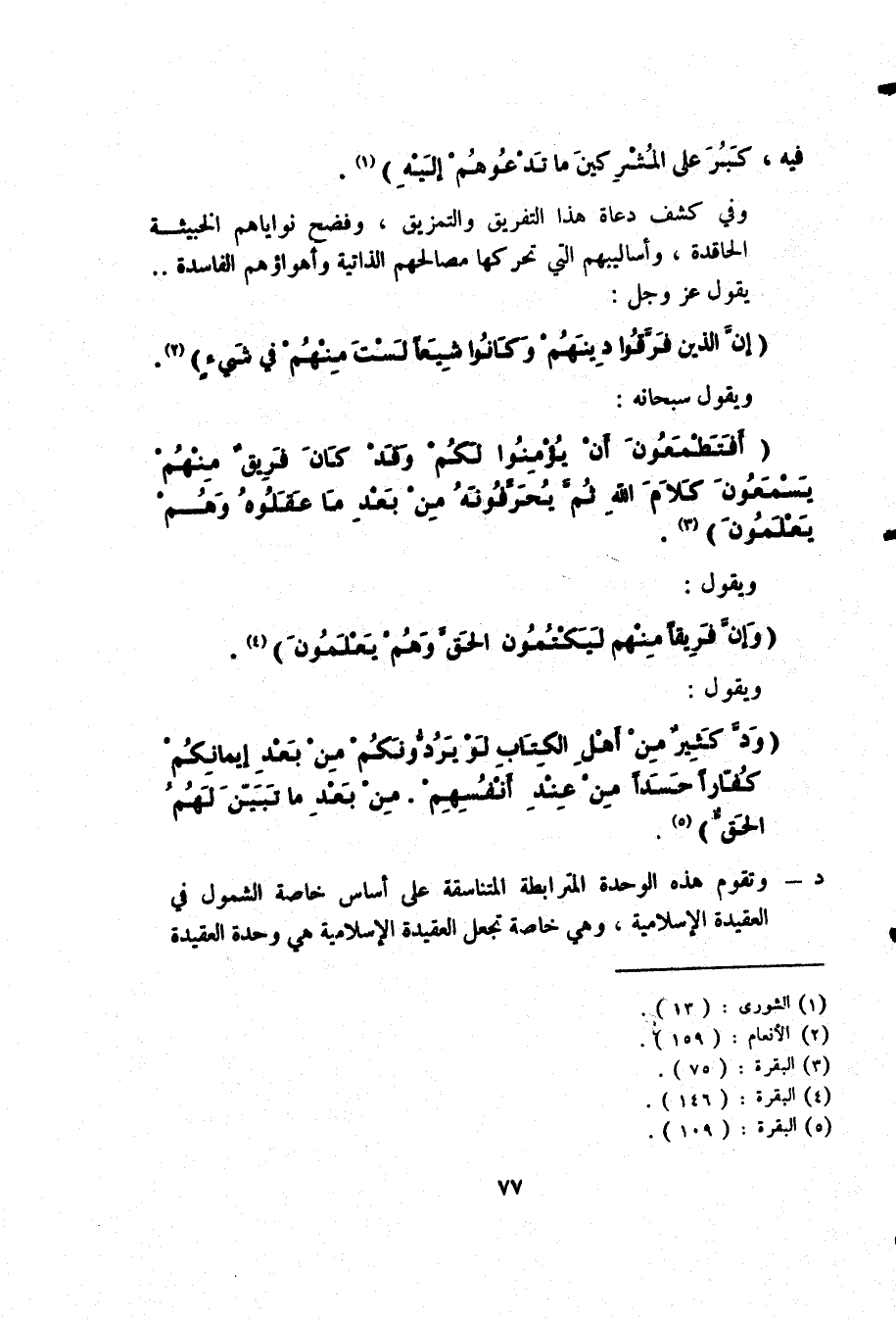 د- وتقوم هذه الوحدة المترابطة المتناسقة على أساس خاصة الشمول في العقيدة الإسلامية، وهي خاصة تجعل العقيدة الإسلامية هي وحدة العقيدة