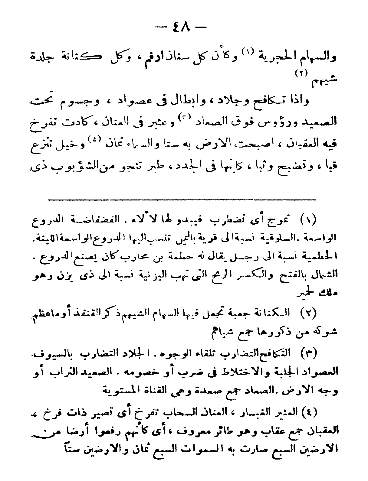 والسّهام الحجريّة وكأنّ كلّ سنان أرقم، وكل كنانةٍ جلدة شيهم.