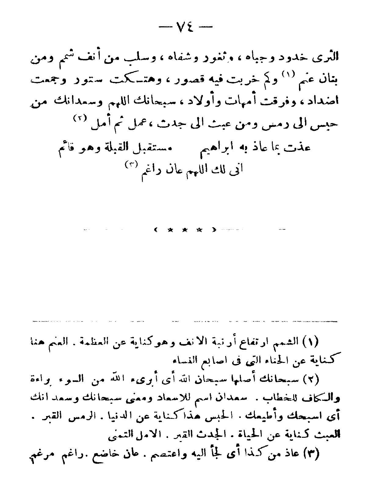 الثّرى خدودٌ وجباه، وثغورٌ وشفاه، وسلبٌ من أنفٍ شمم ومن بنانٍ عنم، وكم خُرِّبَتْ فيه قصور، وهُتِكَتْ ستور وجُمِعَتْ أضداد، وفُرِّقَتْ أمهاتٌ وأولاد، سبحانك اللهم وسعدانك من حبسٍ إلى رمس، ومن عبثٍ إلى جدث، عملٌ ثمّ أمل.