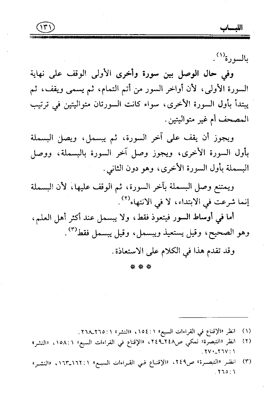 (¬3) انظر «التبصرة» ص 249، «الإقناع في القراءات السبع» 1: 162 - 163، «النشر» 1: 265.