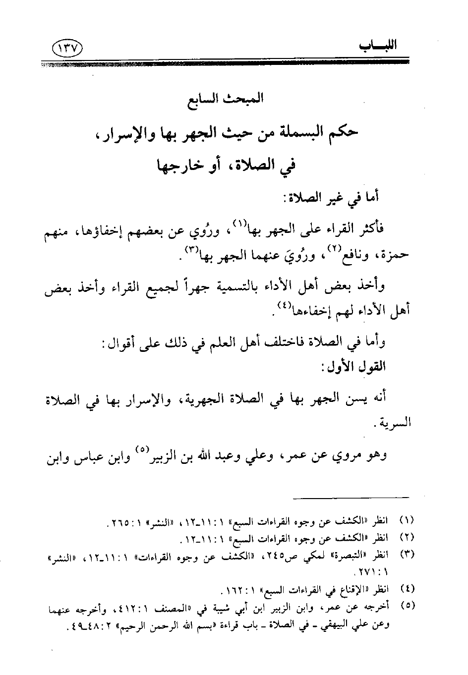 (¬5) أخرجه عن عمر، وابن الزبير ابن أبي شيبة في «المصنف» 1: 412، وأخرجه عنهما وعن علي البيهقي- في الصلاة- باب قراءة {بسم الله الرحمن الرحيم} 2: 48 - 49.