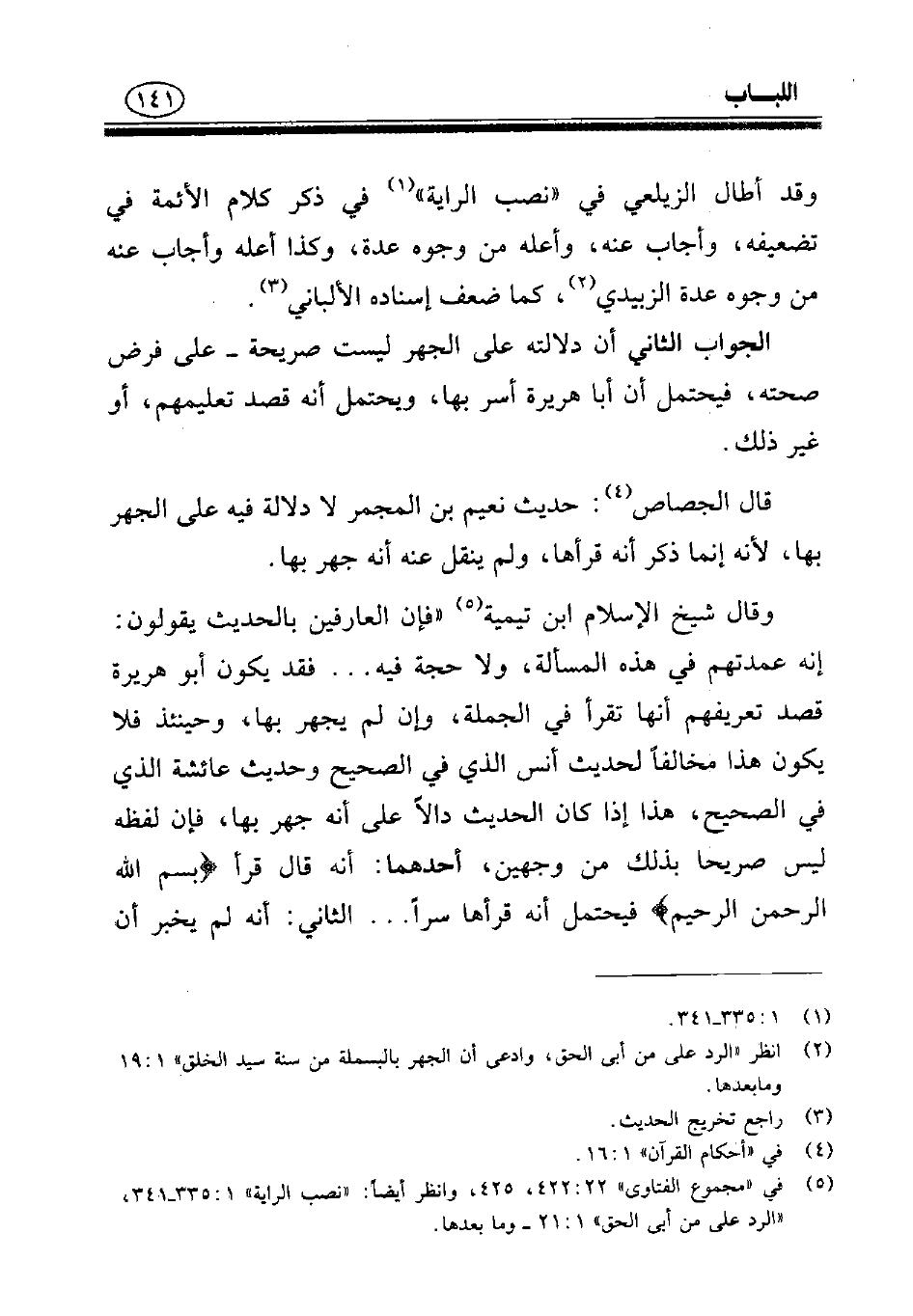 (¬5) في «مجموع الفتاوى» 22: 422، 425، وانظر أيضًا: «نصب الراية» 1: 335 - 341، «الرد على من أبى الحق» 1: 21 - وما بعدها.