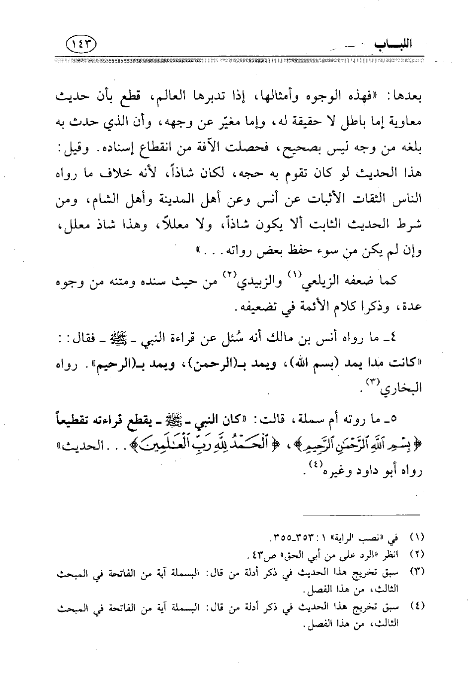 (¬4) سبق تخريج هذا الحديث في ذكر أدلة من قال: البسملة آية من الفاتحة في المبحث الثالث، من هذا الفصل.