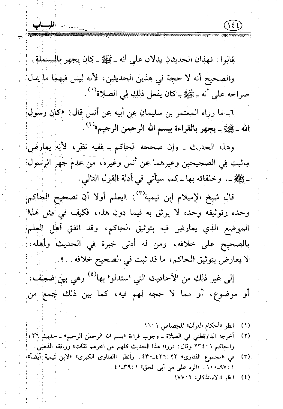 (¬2) أخرجه الدارقطني في الصلاة- وجوب قراءة «بسم الله الرحمن الرحيم» - حديث 26، والحاكم 1: 234، وقال: «رواة هذا الحديث كلهم عن آخرهم ثقات» ووافقه الذهبي.