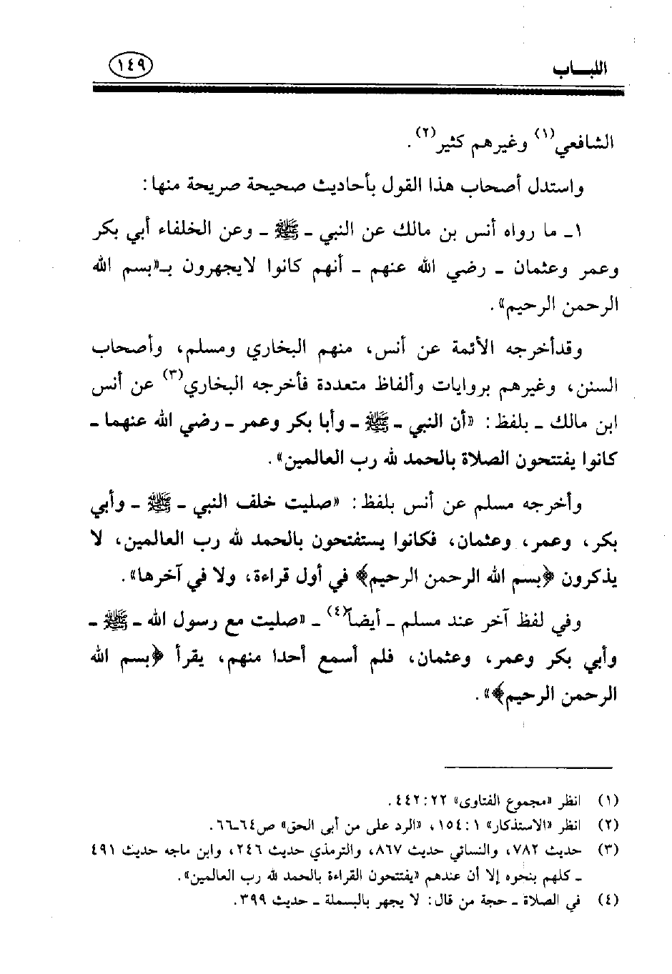 (¬4) في الصلاة- حجة من قال: لا يجهر بالبسملة- حديث 399.