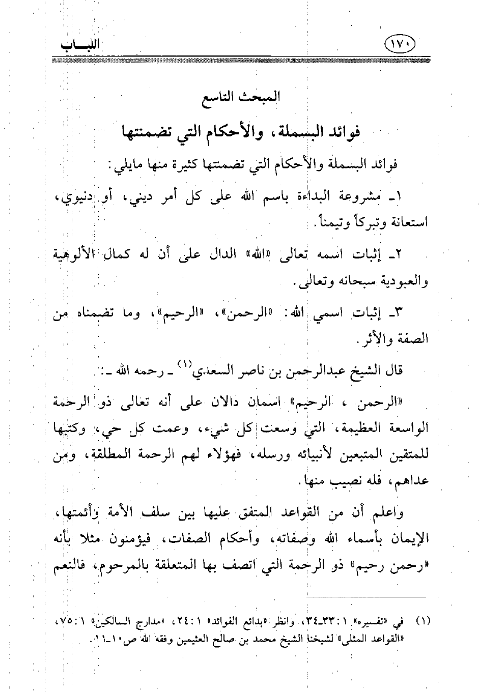 فوائد البسملة والأحكام التي تضمنتها كثيرة منها ما يلي: