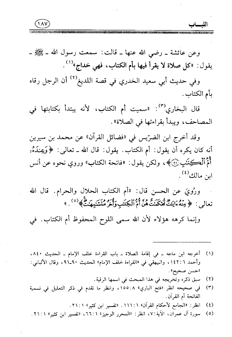 (¬3) في صحيحه انظر «فتح الباري» 8: 155, وانظر ما تقدم في ذكر التعليل في تسمية الفاتحة أم القرآن.