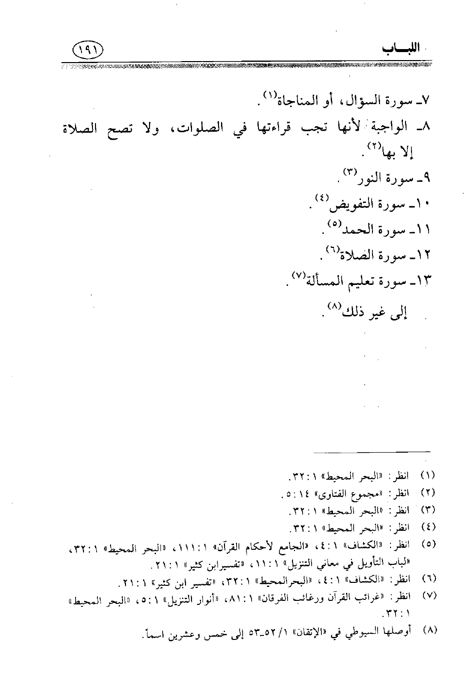 (¬5) انظر: «الكشاف» 1: 4, «الجامع لأحكام القرآن» 1: 111, «البحر المحيط» 1: 32, «لباب التأويل في معاني التنزيل».
