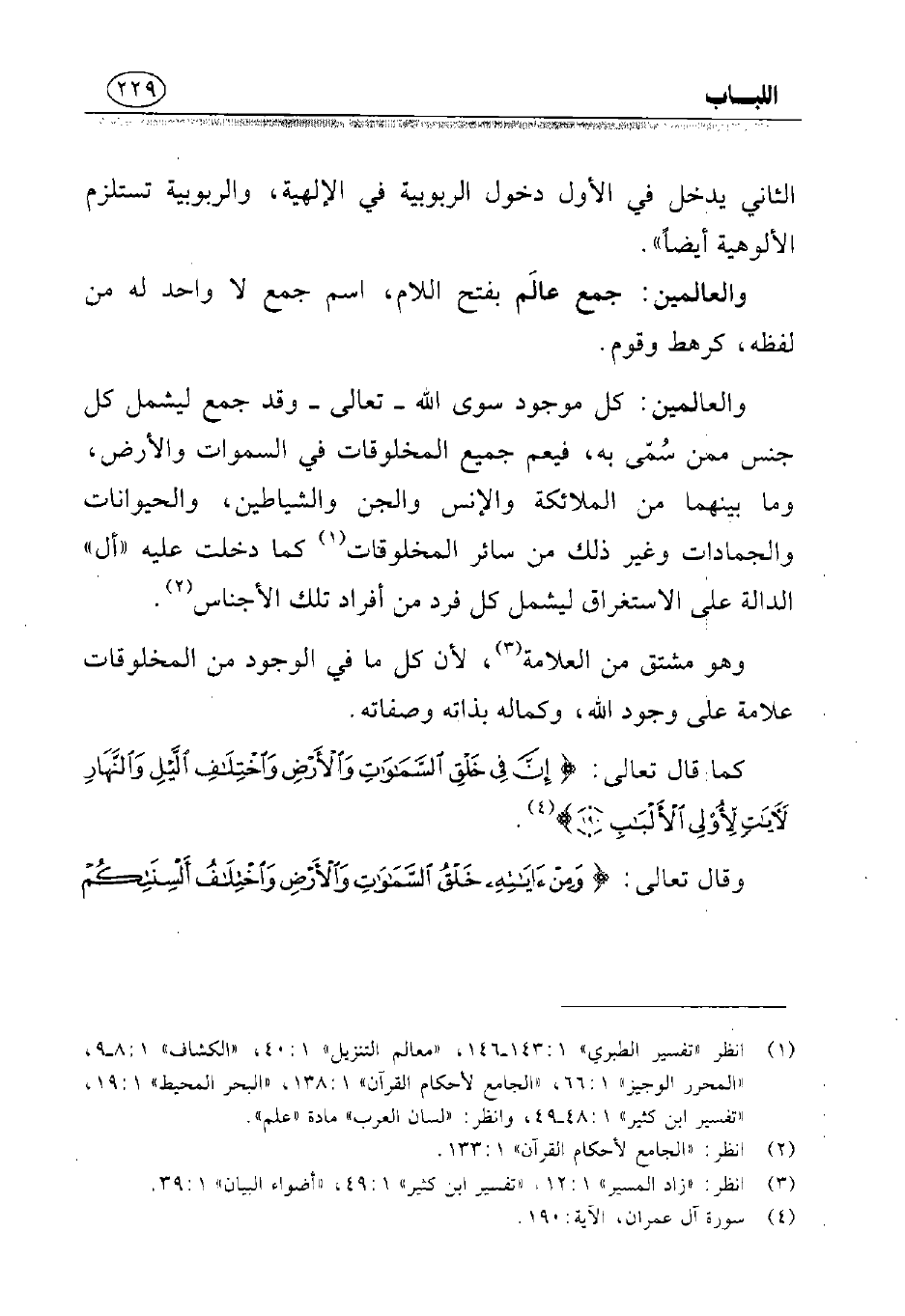 (¬1) انظر «تفسير الطبري» 1: 143 - 146، «معالم التنزيل» 1: 40، «الكشاف» 1: 8 - 9، «المحرر الوجيز» 1: 66، «الجامع لأحكام القرآن» 1: 138، «البحر المحيط» 1: 19، «تفسير ابن كثير» 1: 48 - 49، وانظر «لسان العرب» مادة «علم».