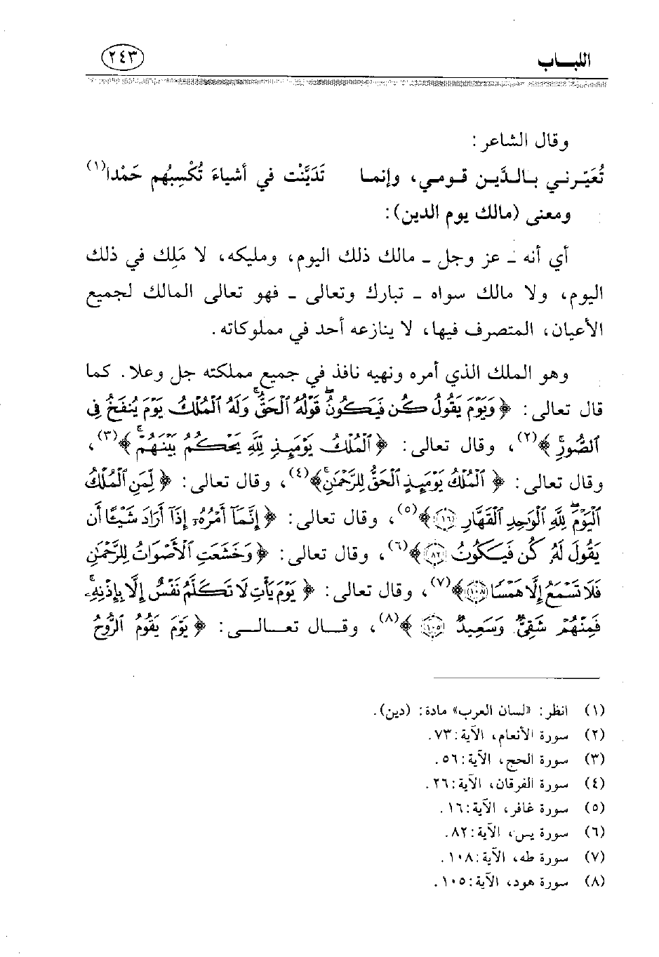 (¬1) انظر: «لسان العرب» مادة: (دين).