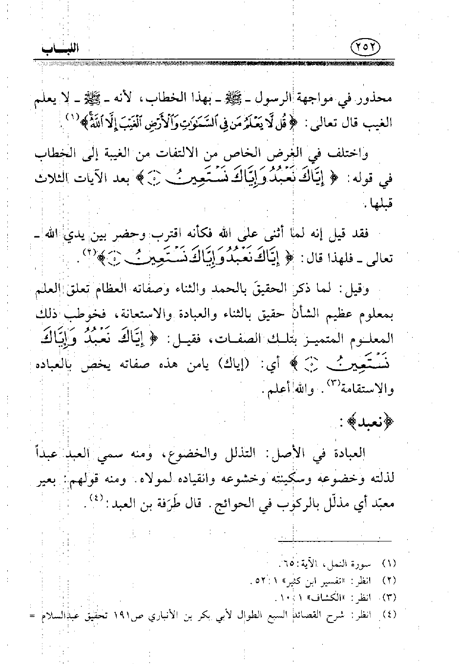 (¬4) انظر: شرح القصائد السبع الطوال لأبي بكر بن الأنباري ص191 تحقيق عبد السلام هارون، طبع بمصر سنة 1400 هـ