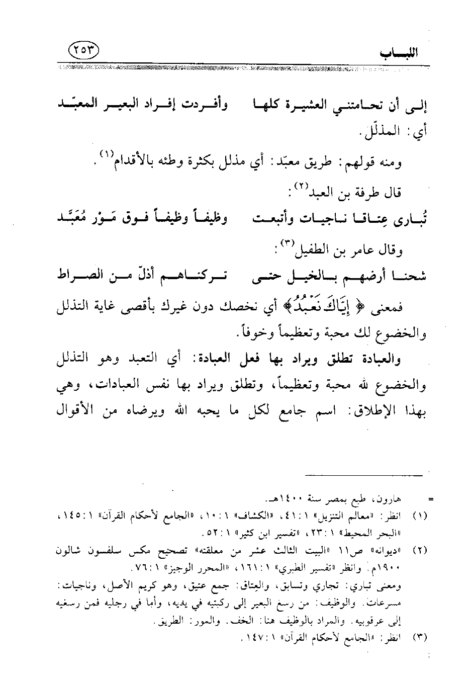 (¬2) «ديوانه» ص11، البيت الثالث عشر من معلقته، تصحيح مكس سلفسون شالون 1900م. وأنظر «تفسير الطبري» 1:161، «المحرر الوجيز» 1:76.