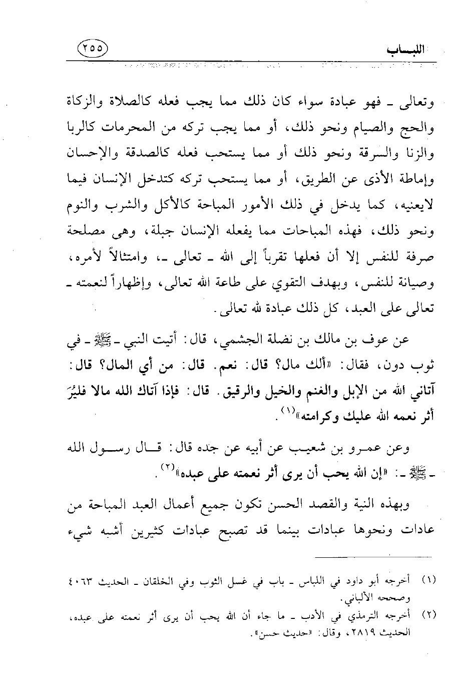(¬2) أخرجه الترمذي في الأدب- ما جاء أن الله يحب أن يرى أثر نعمته على عبده، الحديث 2819، وقال: «حديث حسن»