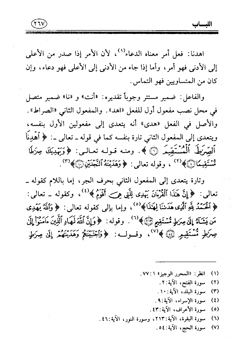 والفاعل: ضمير مستتر وجوبًا تقديره: «أنت» و «نا» ضمير متصل في محل نصب مفعول أول للفعل «اهد». والمفعول الثاني ... «الصراط». والأصل في الفعل «هدى» أنه يتعدى إلى مفعولين الأول بنفسه، ويتعدى إلى المفعول الثاني تارة بنفسه كما في قوله- تعالى -: {اهْدِنَا الصِّرَاطَ الْمُسْتَقِيمَ}. ومنه قوله تعالى: {وَيَهْدِيَكَ صِرَاطًا مُسْتَقِيمًا} (¬2)، وقوله تعالى: {وَهَدَيْنَاهُ النَّجْدَيْنِ} (¬3).