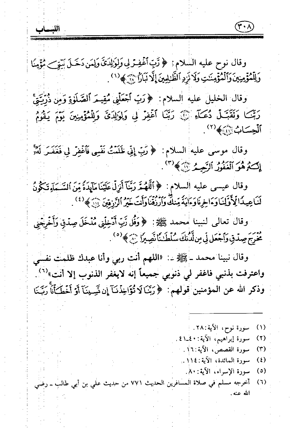 وقال نوح عليه السلام: {رَبِّ اغْفِرْ لِي وَلِوَالِدَيَّ وَلِمَنْ دَخَلَ بَيْتِيَ مُؤْمِنًا وَلِلْمُؤْمِنِينَ وَالْمُؤْمِنَاتِ وَلَا تَزِدِ الظَّالِمِينَ إِلَّا تَبَارًا} (¬1).